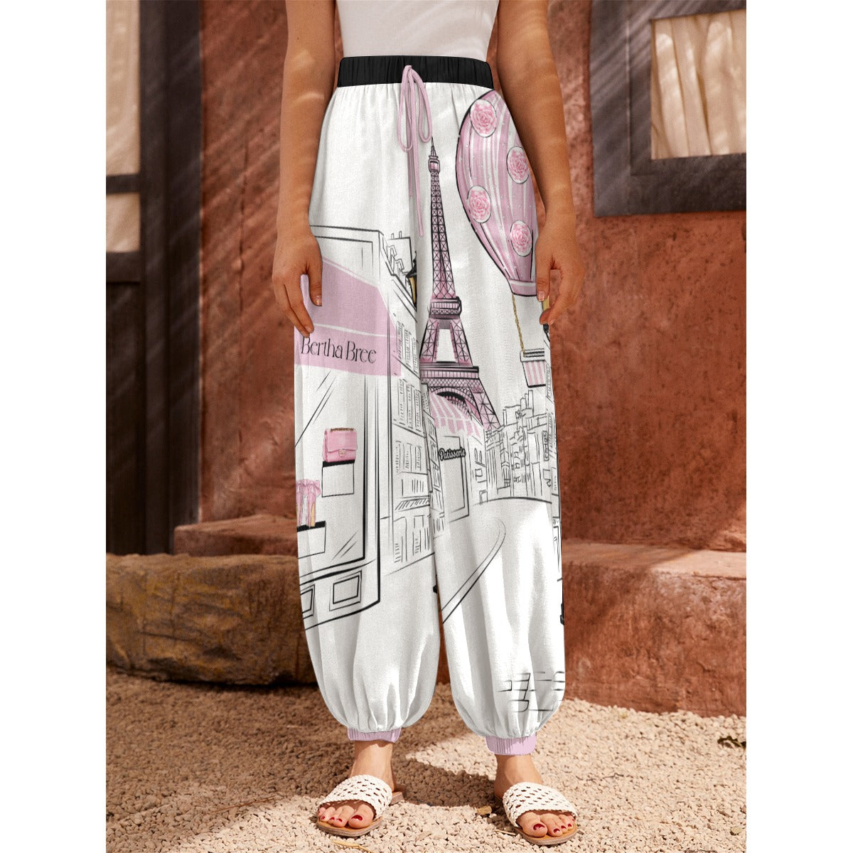 Charlotte in Paris Collection Crafted casual carrot pants, with thin elastic bands at the waist, and cuffs at the feet. Decorated with a Feathers of Style illustration. You can also enjoy a sense of fashion while you are relaxing with a cup of tea. This is the perfect pants for all fashion women.