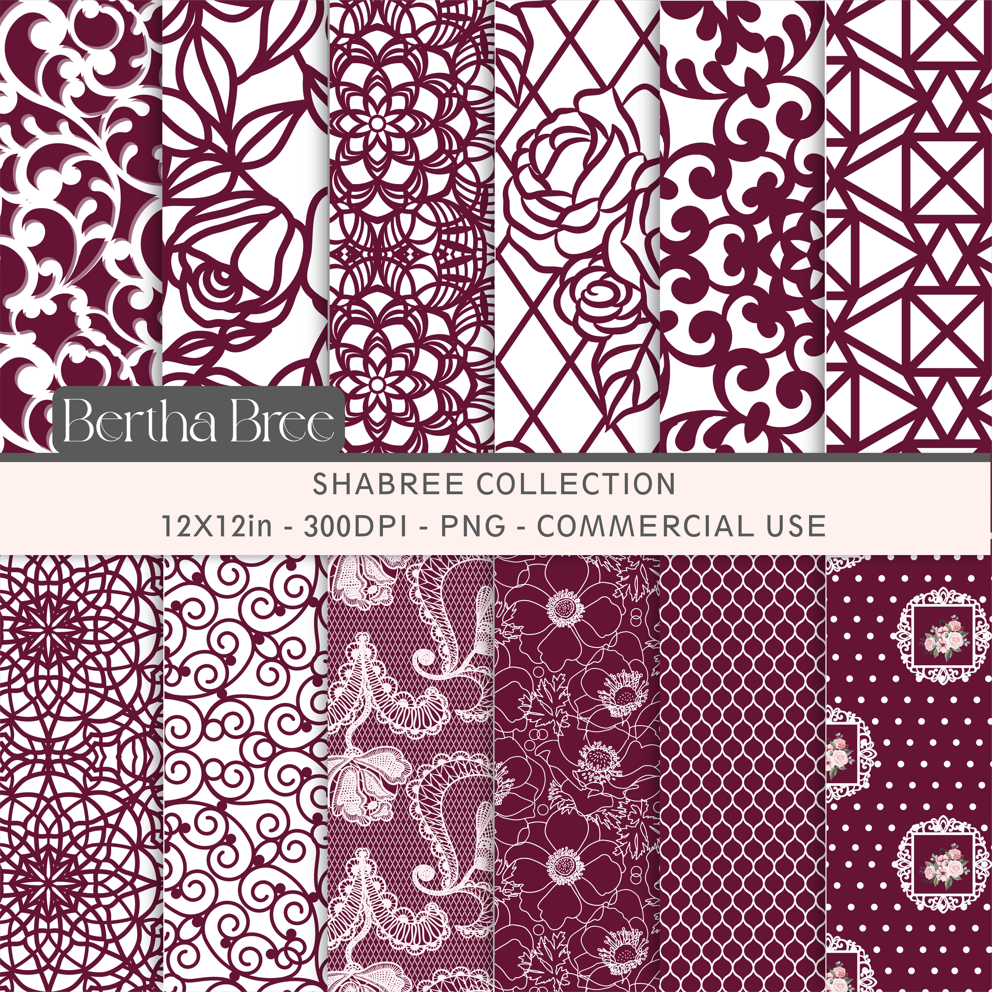 Digital Set of 12 Coordinating Digital Papers.