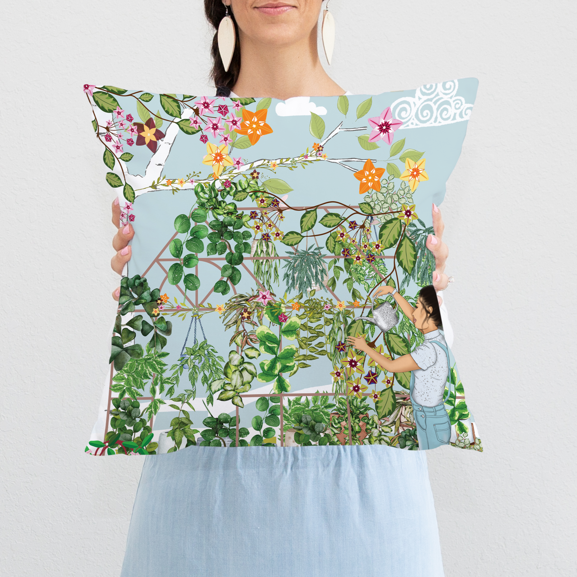 Hoyaholic Cushion is made from 100% Polyester with Bertha Bree's bespoke illustration on the front. The inner is 100% Polyester and is finished with an invisible zipper along the bottom seam.