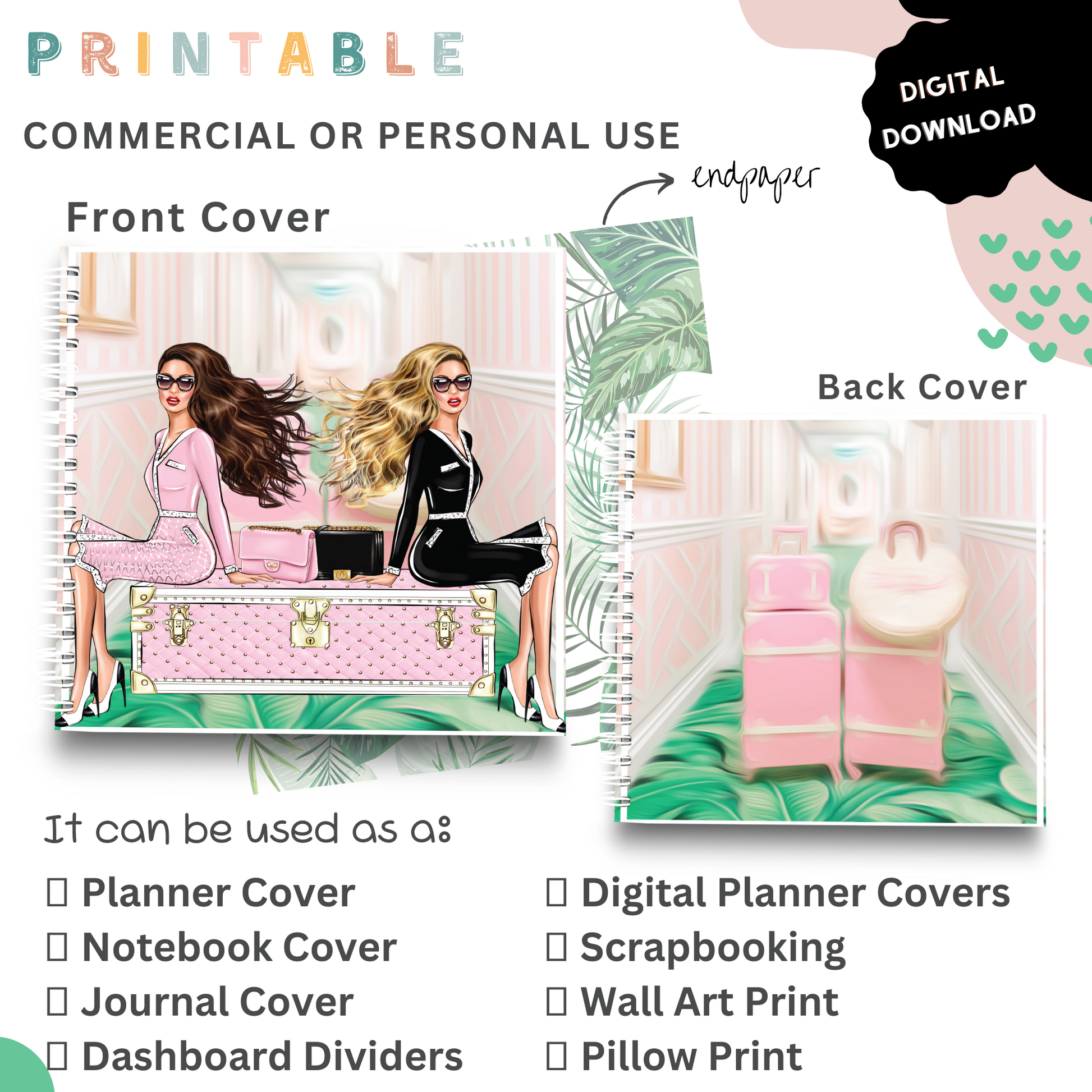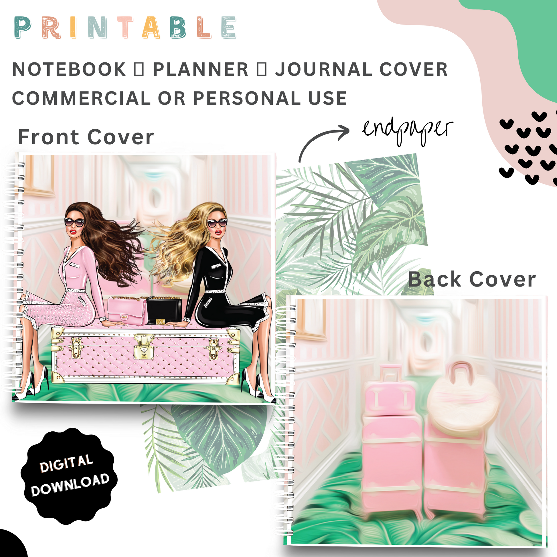 Palm Beach Girls - Printable Planner - Journal - Notepad Cover
