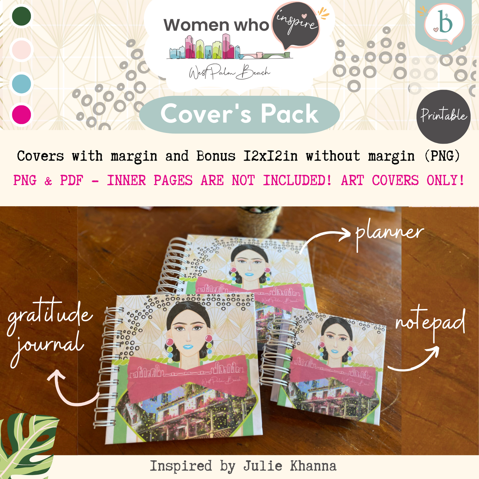 Digital Set of 3 covers PNG and PDF for chipboard use with margin for folding (Planner 18 x 18cm, Gratitude Journal 14.8 x 14.8cm and Notepad 10 x 10cm)